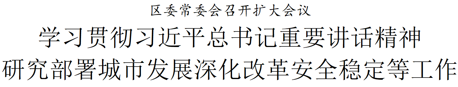 10月17日,区委常委会召开扩大会议,学习贯彻习近平总书记在中央城市工作会议上的重要讲话精神,传达学习市委城市工作会议、市委全面深化改革委员会会议精神和市委书记陈敏尔,市委副书记、市长张工到滨海新区调研时的指示要求,研究新区贯彻落实措施,安排部署党的二十届四中全会期间新区有关工作。区委书记连茂君主持会议并讲话。