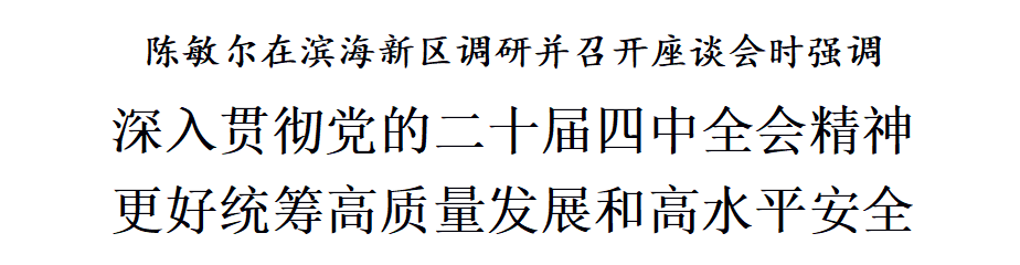| 陈敏尔在滨海新区调研并召开座谈会:深入贯彻党的二十届四中全会精神,更好统筹高质量发展和高水平安全 |