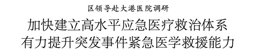 单泽峰在调研中强调,规范、高效开展各类突发事件特别是涉危化事件紧急医学救援,是最大限度避免和减少人员伤亡、切实保障人民群众生命安全和身体健康的重中之重。要进一步加强应急医疗能力建设,依托大港医院精心规划好、建设好危化伤应急医疗救治中心,以最高标准、最严要求推进各项建设工作,加快备齐必要的急救设备和单元,有效提升专业化、规范化危化伤快速处置、精准救治能力。要进一步推进应急医疗队伍建设,加强医护人员专业技能培训,常态化开展全链条全要素的应急实战演练,不断提高现场自我防护和伤员急救能力,确保一旦发生涉危化突发事件,队伍能够拉得出、救得及,顺利完成好先期的应急医疗任务,为伤病员救治赢得宝贵的时间。要进一步推进应急医疗机制建设,全面建立健全应急医疗预案体系,持续提升院前急救响应速度,完善突发事件专业医疗救援力量的有效调动和相互支援机制,确保医疗救治各环节衔接顺畅、高效运转,真正打通生命急救“最后一公里”。
