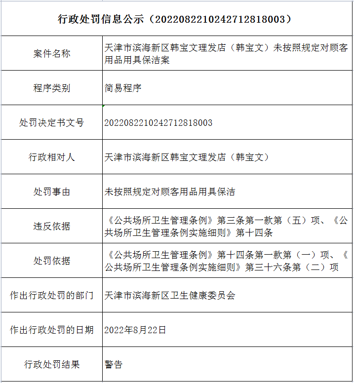 行政处罚信息公示